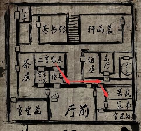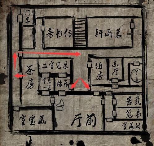 从存档室前往丫鬟房(拿到金刚橛后,护院王勇会随机在各处出现追杀玩家)