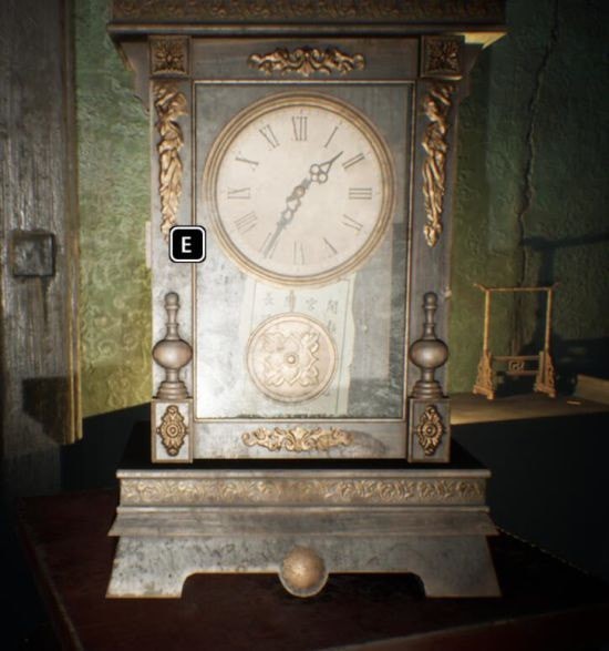 记录座钟时间(时间每次游戏随机),打开座钟拿到展览室诗文