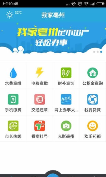 4.“我家亳州”共开发了查询缴费、交通出行、居家生活、医疗保健、新闻综合等7个一级栏目,一级栏目下共设24个二级栏目,为用户的生活带来了极大的便利。