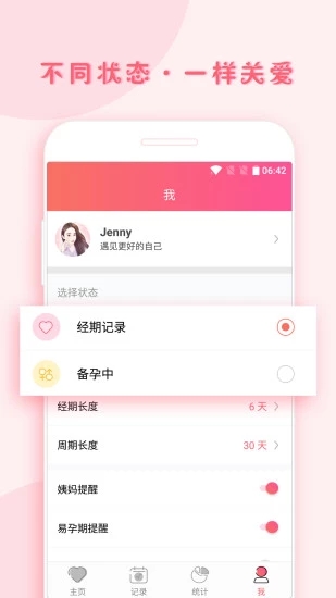 精美的交互界面专为美丽的你设计主面板综合月经周期的各种提示,简单清除、一目了然