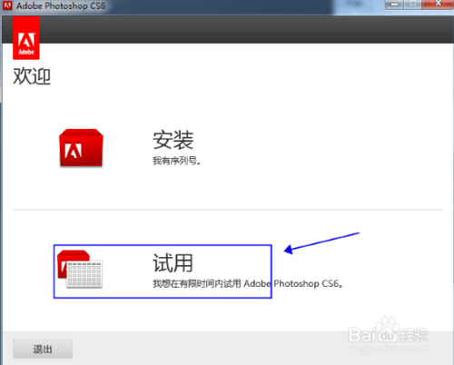 1、下载后,选择试用版本,选择安装Adobe Photoshop CS6试用版,(安装完成后,再来激活)如图