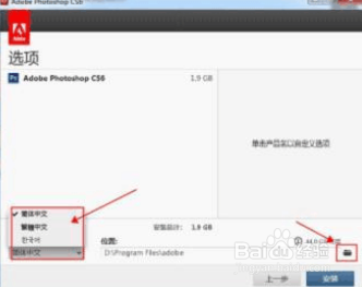 4、选择安装路径,建议选择路径【D:\Program\Files\adobe\Adobe Photoshop CS6】,如果没有,可以创建