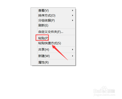 4、在根目录内单击鼠标右键,在弹出的右键菜单里找到粘贴选项,如图所示: