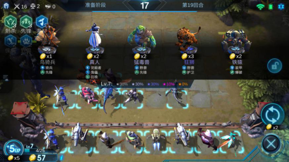12.花费5金币为指挥官增加经验,指挥官等级提升可以增加上场的棋子数。最多可升10级,在战场上放置10枚棋子。