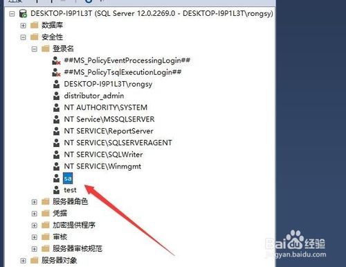 然后找到安全性下面的sa用户,如下图所示