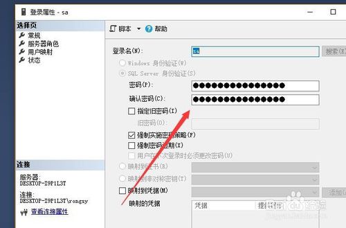 然后设置一下sa的登录密码,如下图所示