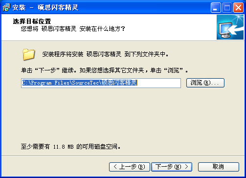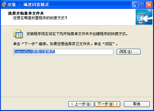 6,单击“下一步”,进入选择开始菜单文件夹的界面或者单击浏览把闪客精灵5.0安装在指定目录下,进入选择开始菜单文件夹 的界面: