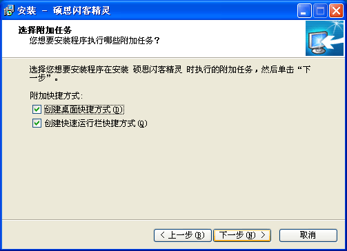 7,单击“下一步”进入选择附加任务的界面或者单击浏览把快捷方式安装在指定目录下,进入选择附加任务的界面: