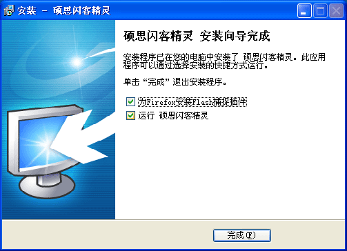 10,第一个选项前面单击,此插件方便你配合闪客精灵一起使用,第二个你需要现在运行就单击不需要就不用单击,最后单击完成。