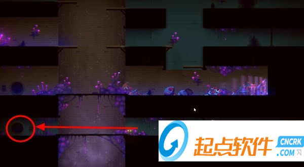 从洞口另一侧出来后,向左走,进入圆形洞口。