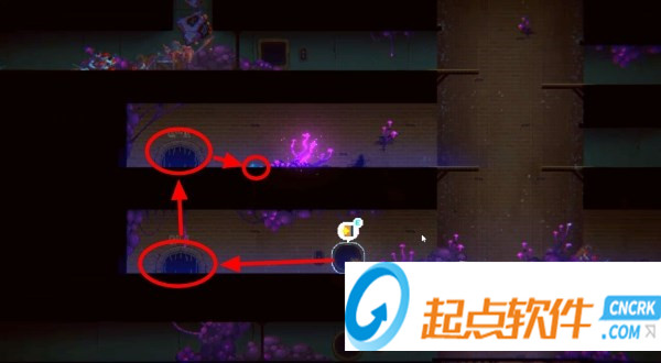 接着,进入左边的隧道口,吓走上面的老鼠。