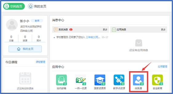 首先,用户登录国家教育资源公共服务平台进入个人空间首页,查看应用中心,找到应用模块“体系通”。已接入体系的地方平台登录的用户同样可以在个人页面中查找相关应用。