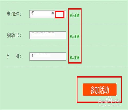 3、填写个人信息,在这里需要注意的是:电子邮件,身份证,手机号这三项因为以前都晒过课,所以会显示,只要把鼠标放入这三项的方框内单击一下,让后面出现输入正确,这时候才能单击参加活动。不然是没有反应的。然后显示报名成功,等待审核。