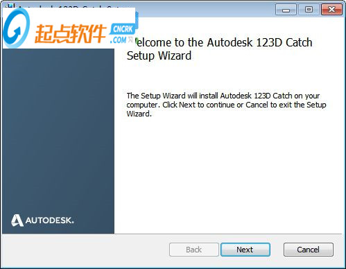 1、在本站下载文件找到"123DCatch.msi"双击运行;2、进入欢迎安装向导界面,点击Next;