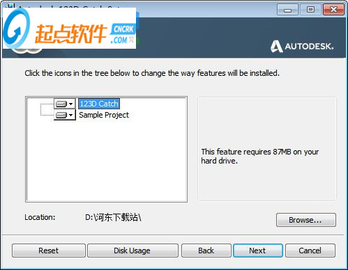 4、对安装位置选择,默认位置"C:\Program Files (x86)\Autodesk\123D Catch\",建议安装D盘,点击Next;