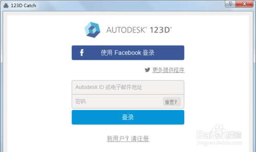 有的人打开123D Catch软件出错,是因为我们需要使用Autodesk帐号登录,如果没有注册一个就行了。