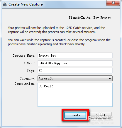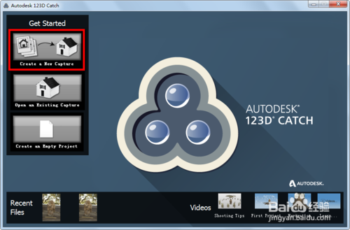 登录后123D Catch软件就打开了,我们点击Create a New Capture。