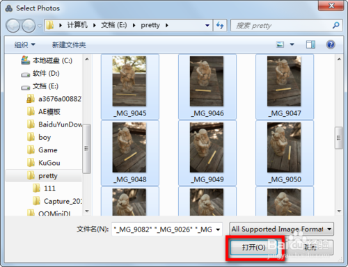 选中模型的所有照片然后点击打开。(有时使用Autodesk 123D catch建模时无法上传图片怎么办呢,我们需要将照片的储存路径保存在英文目录下。)