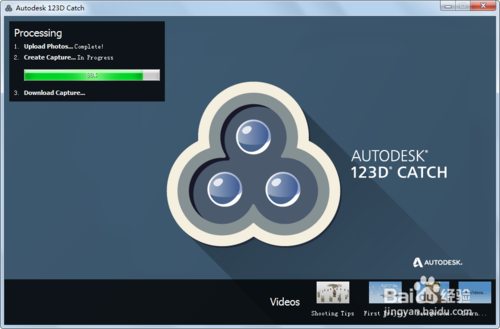 接下来我们就要耐心的等等123D catch将照片转换成三维模型,这个时间比较长,放那一直等就好了。