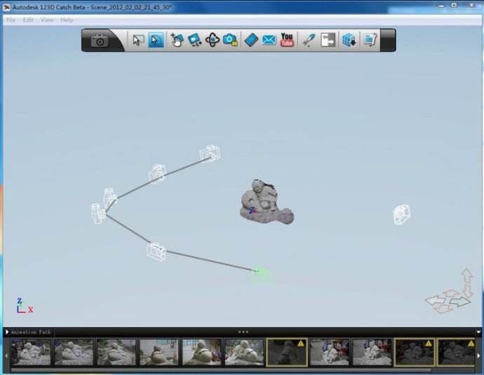 123D Catch它利用云计算的强大能力,可将数码照片迅速转换为逼真的三维模型。只要使用傻瓜相机、手机或高级数码单反相机抓拍物体、人物或场景,人人都能利用 Autodesk 123D 将照片转换成生动鲜活的三维模型。通过该应用程序,使用者还可在三维环境中轻松捕捉自身的头像或度假场景。同时,此款应用程序还带有内置共享功能,可供用户在移动设备及社交媒体上共享短片和动画。