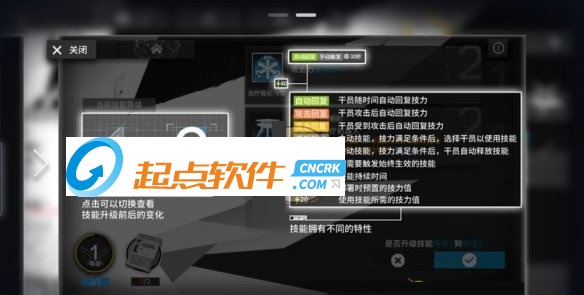 技能升级可以提升干员技能的强度。技能等级为1-7级,不论多少技能都通用这个等级。之后可针对个别技能提升“专精”,实质上为单个技能的8-10级。