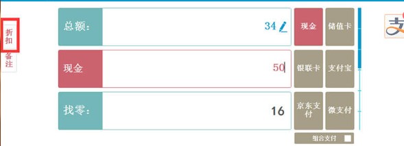 (3)选择完商品后点击收款,默认支付方式为现金,输入实收,系统自动计算找零,确认即可