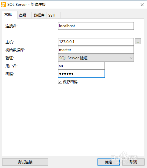 打开Navicat Premium12 选择连接-sql server 打开页面如下: