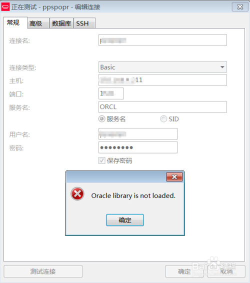 2、点击测试连接报错 oracle library is not loaded