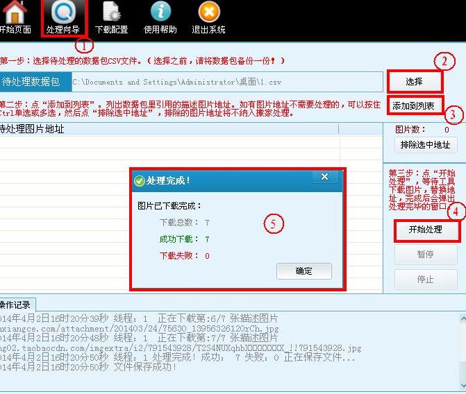 工具处理成功后,将原数据包CSV文件导入淘宝助理(工具是直接修改原文件的),再上传就不会再出现“您不能使用他人图片空间中的图片”等问题