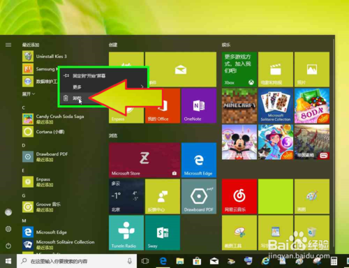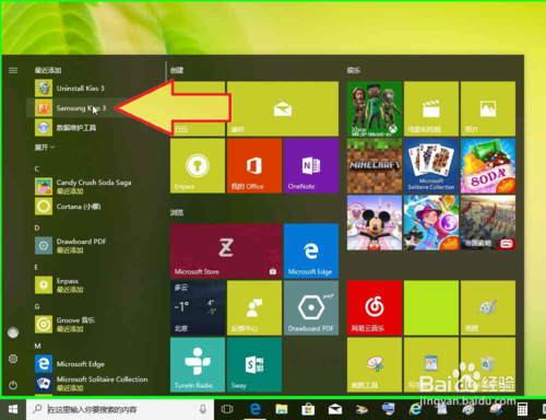 在"Samsung Kies 3,最近添加 (列表项目)"上右键单击(在"启动"中)。
