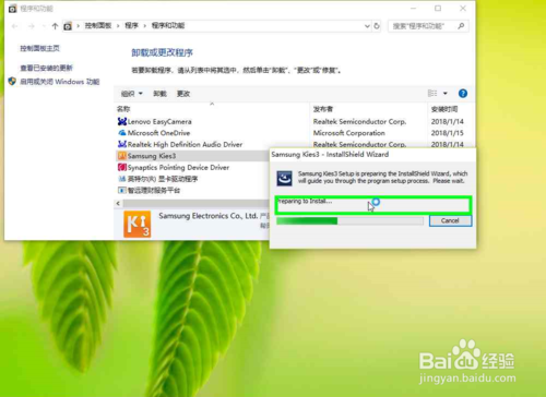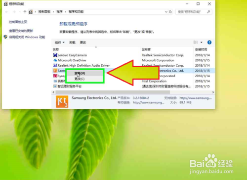 在"Samsung Kies3 (编辑)"上右键单击(在"程序和功能"中)。