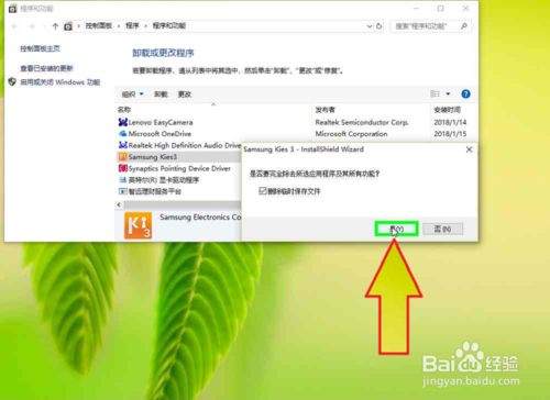 在"是(Y) (按钮)"上左键单击(在"Samsung Kies 3 - InstallShield Wizard"中)。