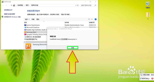 卸载完成,在"完成 (按钮)"上左键单击(在"Samsung Kies 3 - InstallShield Wizard"中)。