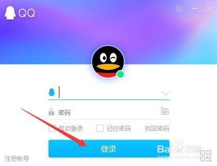 首先我们打开QQ软件,输入自己的账号和密码后进行登录,如图所示;