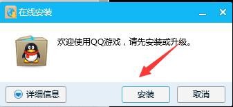 点击"QQ游戏"的图标后会弹出在线安装的提示,我们点击“安装”,如图所示;