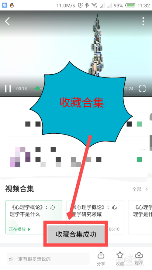 3、点击视频合集后,在屏幕的底部会弹出一个提示,收藏合集成功,视频就收藏成功了。如图所示
