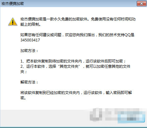 宏杰便捷加密软件是一款非常简单易用的文件夹快速加密工具。这款软件永久免费供用户使用=,同时没有任何的时间以及功能上的限制,支持移动硬盘和U盘中的文件夹加密功能,一键设置密码,就是这么简单的,需要的小伙伴可下载体验。