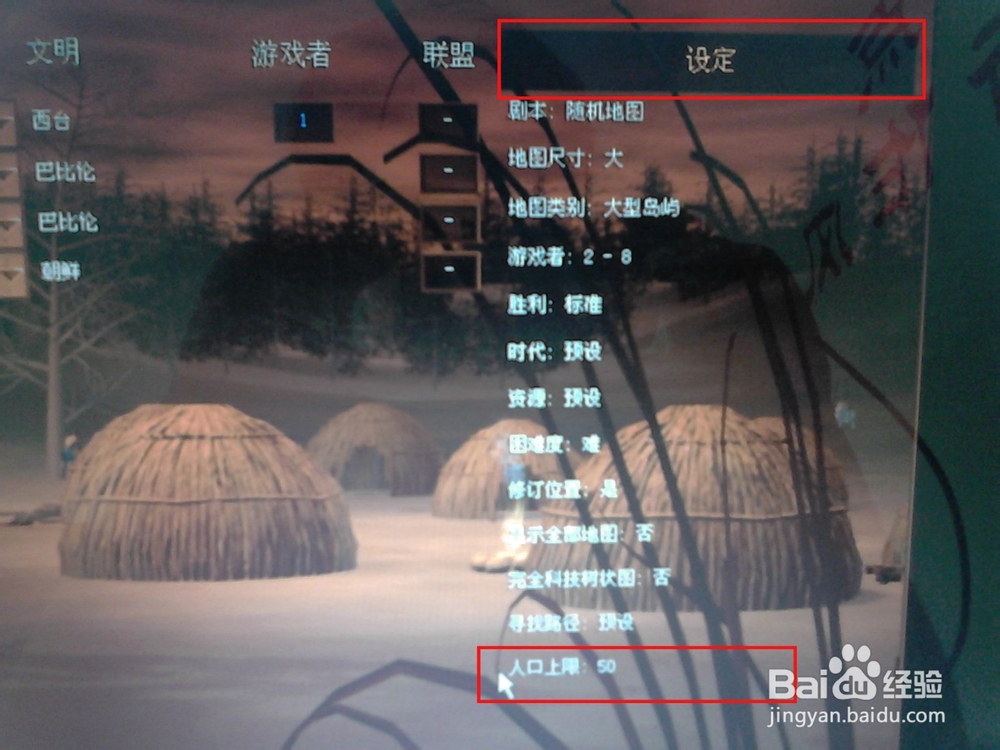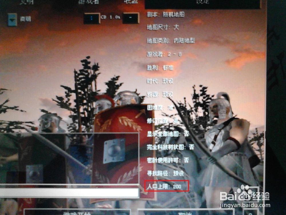 怎么调帝国时代1罗马复兴的人口上限为200?