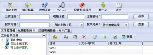 【1】对远程计算机文件管理:模仿Windows 资源管理器,可以对文件进行复制、粘贴、删除,重命名、远程运行等,可以上传下载文件或文件夹,操作简单易用。【2】远程控制命令:查看远程系统信息、剪切板查看、进程管理、窗口管理、插件功能、服务管理、共享管理、代理服务、MS-Dos模拟!
