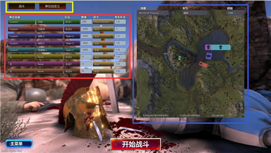 点击开始游戏后会进入战斗准备阶段,很像传统的RTS游戏,可以选择兵种编队以及地图。