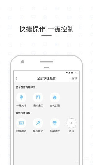 设置快捷场景,一键实现多个智能硬件的控制。如可以一键关闭家里所有灯光、一键打开家里各个房间窗帘;