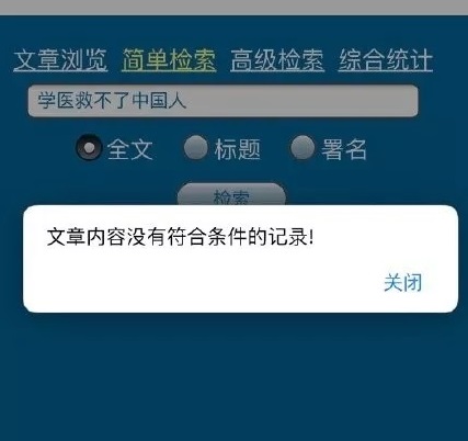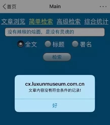 一些鲁迅没有说过的话,系统检索后会提示“文章内没有符合条件的记录”。