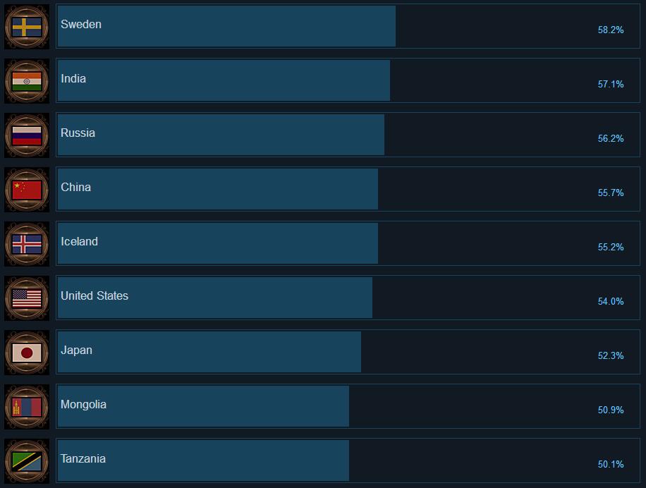 除此之外,空灵清新的BGM也在一定程度上缓解了游戏中的枯燥,不过较为遗憾的是没有每个国家对应的一首BGM,以沙漠国家、大陆国家等分类BGM虽颇有新意,但听多了还是有点腻。