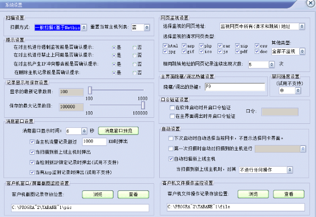 1、系统设置,扫描设置、提示设置、网页见识设置
