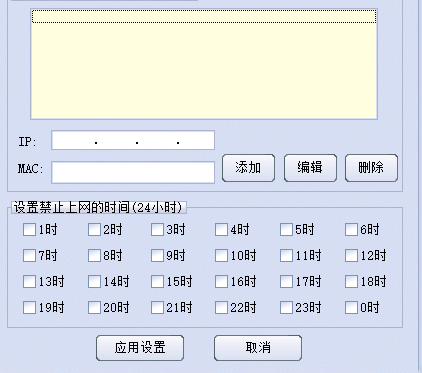 2、上网控制,设置IP\MACV,设置禁止上网时间