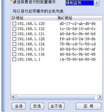 1.增加批量监控功能,可以批量对所有主机进行监视、禁网、冲突警告等操作。