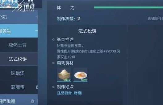 制作界面需要一定的世界,每次是消耗一定的体力,每天都有500点的体力,可以用来钓鱼或者是采集,这样就可以制作出各种菜肴了。