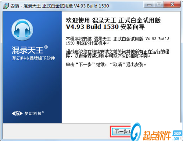 1.运行混录天王的安装程序,进入到安装向导界面,点击下一步。