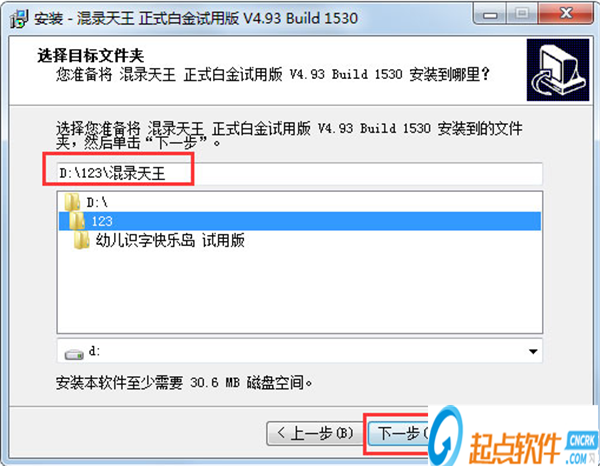3.选择混录天王软件安装的位置,建议安装在D盘,点击下一步。