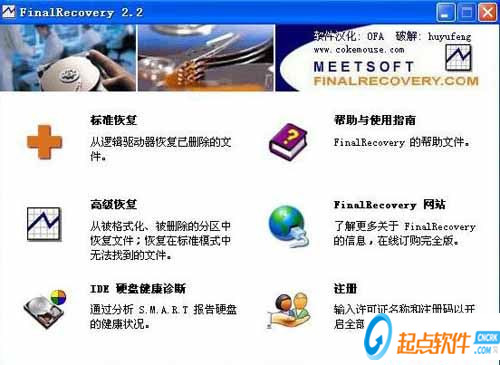 FinalRecovery是一款强大的硬盘数据恢复软件。它可以快速有效的帮你找回不小心被删除的文件或文件夹。就算你的磁盘已经被格式化或者已经被重新分区了,只要磁盘没有被重新写入文件,数据没有被破坏,就还可以再恢复回来。软件界面简洁直观,根据提示就能完成对数据的恢复工作,操作非常的简单。这款软件还增加了硬盘健康诊断功能,可以直观的查看硬盘的各项指标是在正常范围内,对硬盘损坏有所防范。